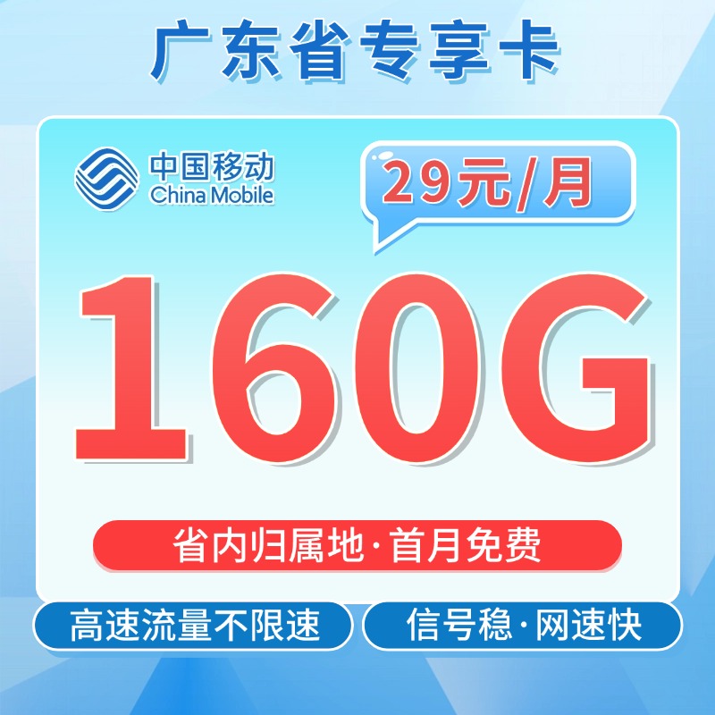 移动广东卡29元160G