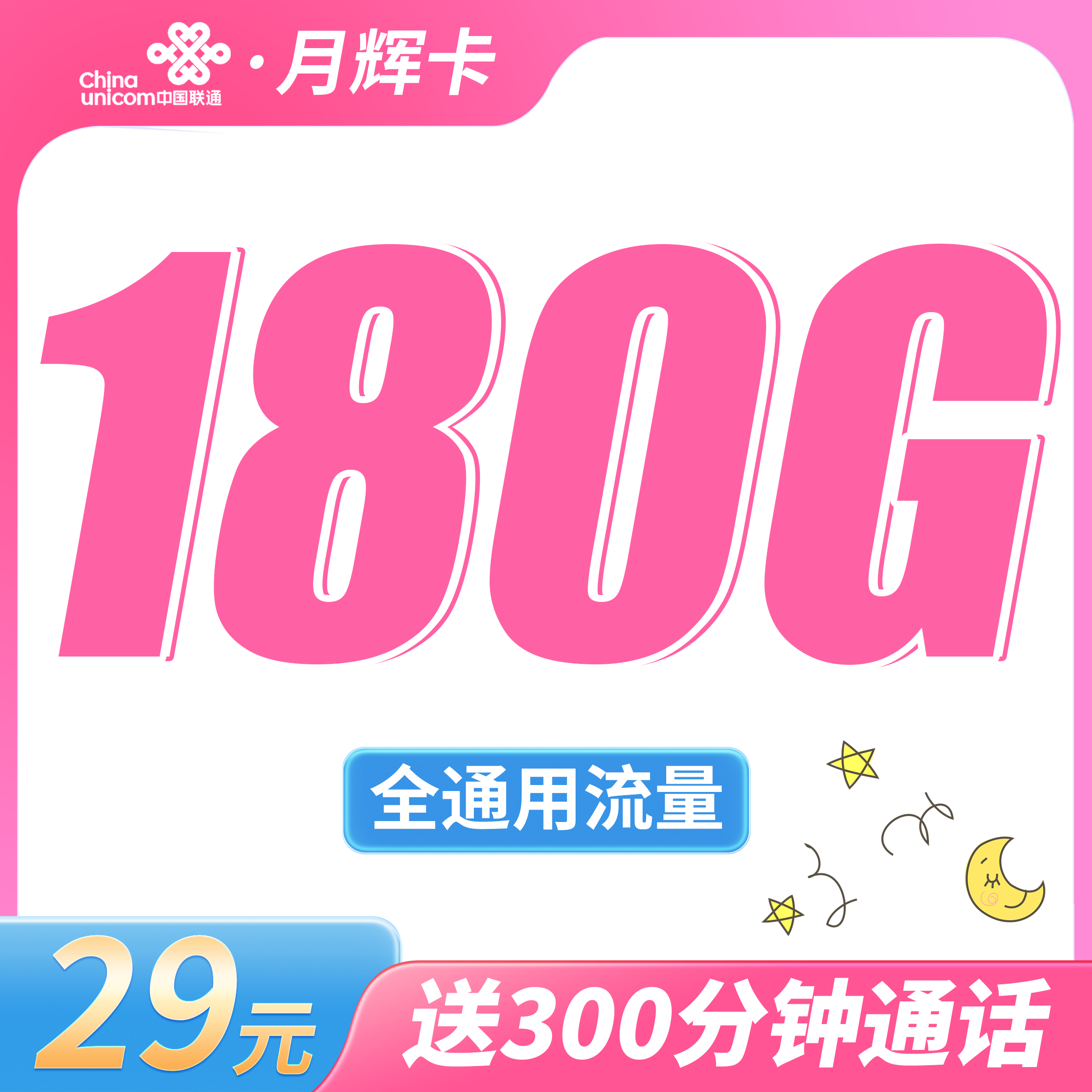联通月辉卡29元180G+300分钟+超大通话!套餐构成首月39元按天计费,次月开始29元180G通用流量+300分钟,套餐有效期12个月到期可续归属地随机不发地区北京,云南,西藏,新疆,辽宁,吉林,黑龙江等地不发货,具体以运营商审核为准配送方式京东/顺丰激活方式自主激活首充渠道任意渠道一次性充值100元话费办理年龄18-60岁违停复机根据短信操作套餐合约12个月合约注销方式支持异地注销、营业厅注
