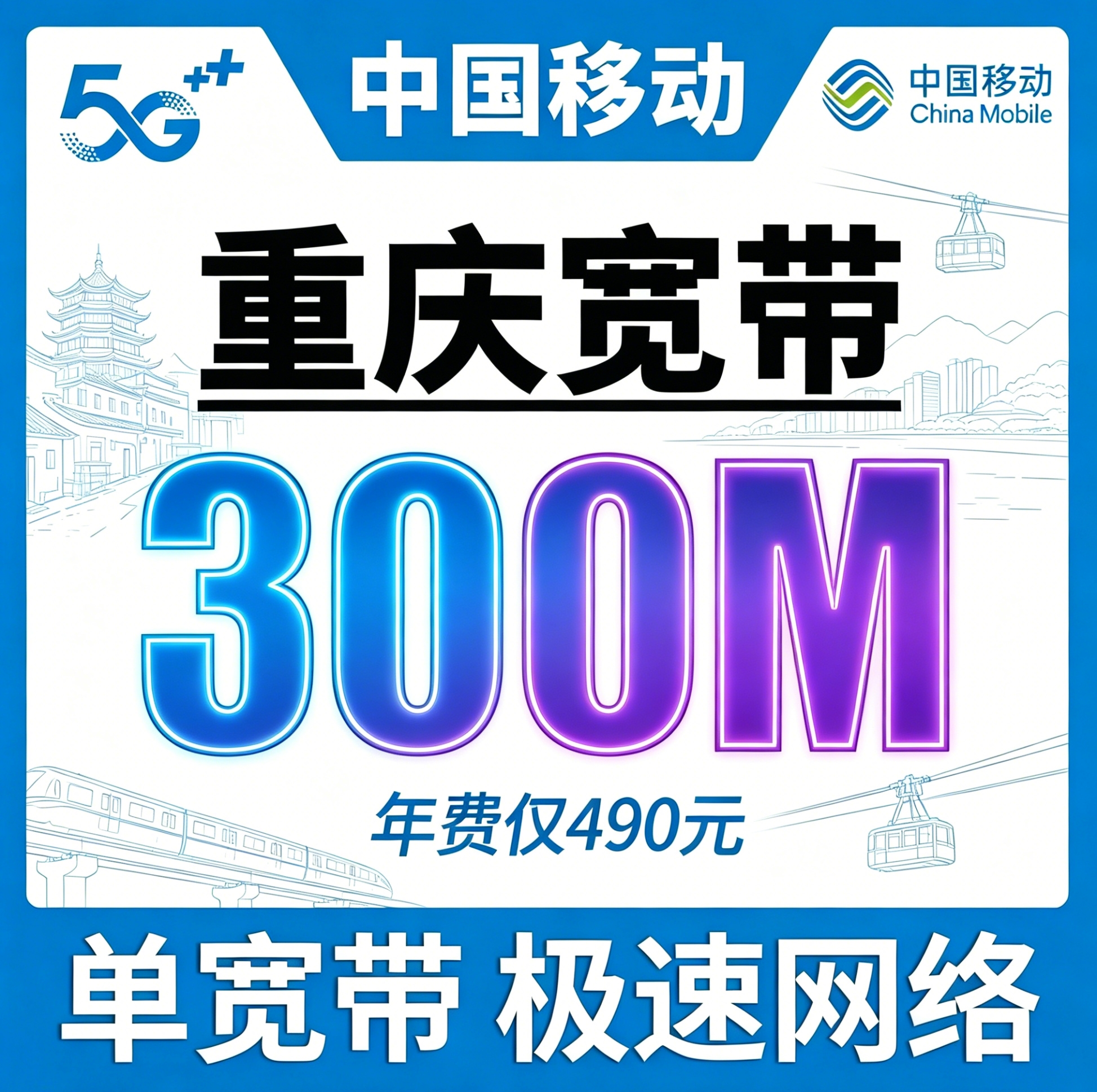 重庆单宽带移动包年490元享300Mbps套餐构成包年490元享300Mbps归属地重庆不发地区仅发重庆配送方式自有人员激活方式快递激活首充渠道安装时师傅收费办理年龄18-65岁违停复机-套餐合约12个月合约注销方式支持异地注销、营业厅注销,合约期内注销有违约金,违约金=(原套餐月租-当前月租)×已履约月份,如有变动以官方为准